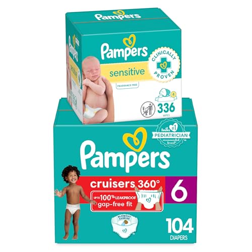 Pampers Pull On Cruisers 360° Fit Disposable Baby Diapers Size 6, 104 Count with Sensitive Water Based Baby Wipes 4X Pop-Top Packs (336 Count)