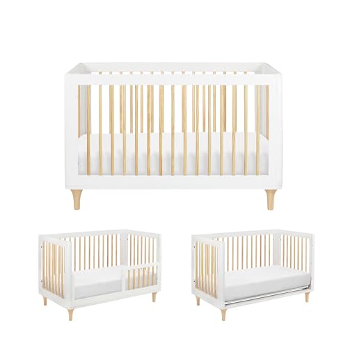 Babyletto Lolly 3-in-1 Convertible Crib with Toddler Bed Conversion Kit in White and Natural, Greenguard Gold Certified