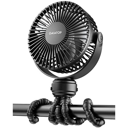 Gaiatop Mini Portable Stroller Fan, Battery Operated Small Clip on, Detachable 3 Speed Rechargeable, 360° Rotate Flexible Tripod Better Cooling for Car Seat Crib Treadmill Travel Black