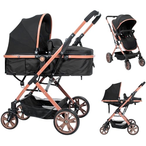 PEARLOVE Baby Stroller Newborn Foldable Pushchair Folding High Landscape Infant Carriage,Toddler Pushchair Black Baby Stroller