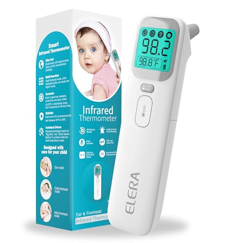 Elera Ear Thermometer for Kids, Baby Thermometer with Forehead and Ear Mode for Adults, Infant, Kids and Toddler, Touchless and 1 Second Reading with Fever Alarm and Mute Function, LCD