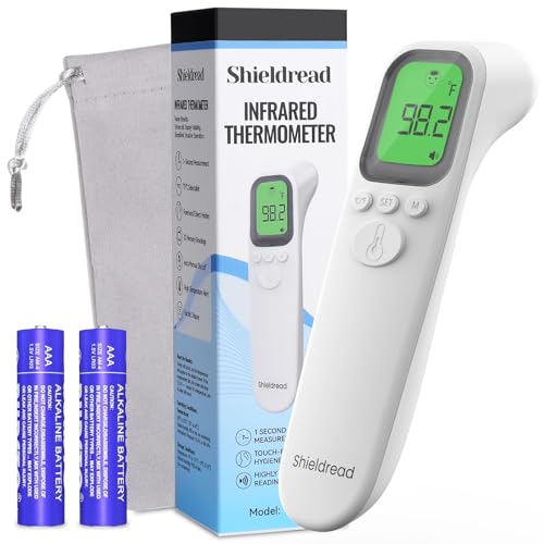 Shieldread Non-Contact Forehead Basal Thermometer for Kids and Adults, Digital Fever Thermometer, Accurate Temperature Reading, LCD Screen, Fever Alarm, Memory Recall, Forehead & Object Mode
