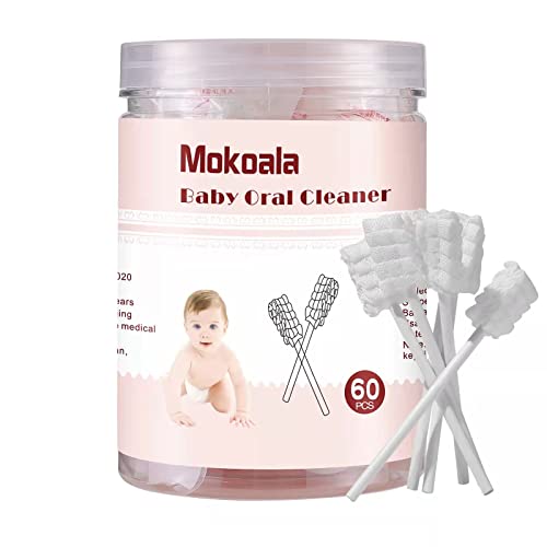 Mokoala 60Pcs Baby Tongue Cleaner, Baby Toothbrush, Disposable Infant Mouth Cleaner, Soft Gauze Toohthbrush Toddler Oral Cleaning Stick Dental Care for 0-36 Month Newborn