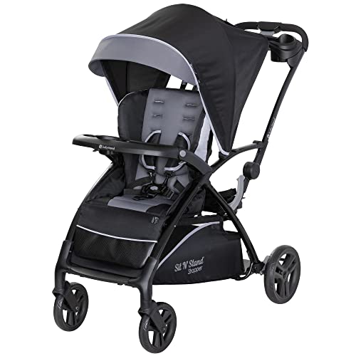 Baby Trend Sit N' Stand 5-in-1 Collapsible Kids Shopper Stroller with Shaded Canopy Visor, Extendable Storage Basket, and 2 Cup Holders, Stormy