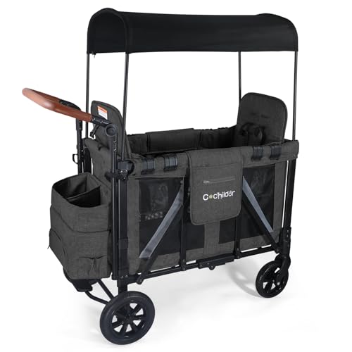 Cochildor Elite 2S 2-Seater Wagon Stroller for Kids – One-Hand Fold Design, High Seats with 5-Point Harness, Adjustable Handlebar, Removable Canopy & Compact Storage, Dark Grey
