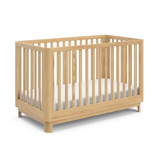 Storkcraft Santos Convertible Crib (Natural) – GREENGUARD Gold Certified, Fits Standard Crib Mattress, Converts to Toddler Bed and Daybed, 4 Adjustable Mattress Heights, Rounded Edges