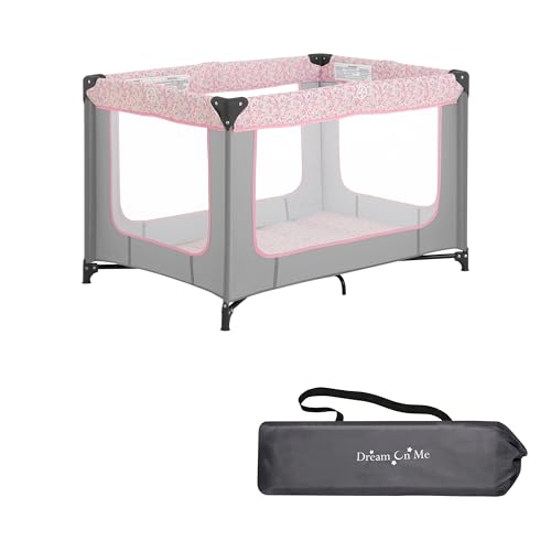 Dream On Me Zodiak Portable Playard in Grey and Pink, Lightweight, Packable and Easy Setup Baby Playard, Breathable Mesh Sides and Soft Fabric - Comes with a Removable Padded Mat