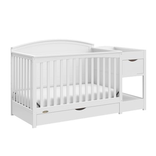 Graco Bellwood 5-in-1 Convertible Crib & Changer with Drawer (White) - GREENGUARD Gold Certified, Full-Size Storage Drawer, Converts to Toddler Bed and Full-Size Bed