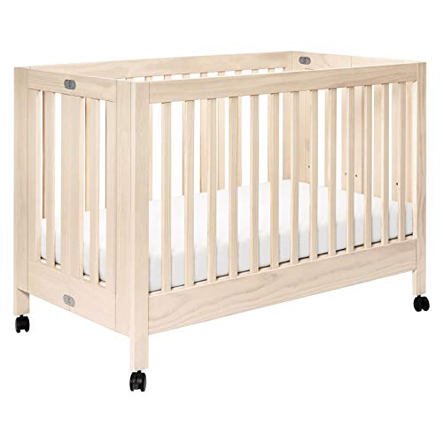 babyletto Maki Full-Size 2-in-1 Portable Folding Crib with Toddler Bed Conversion Kit in Washed Natural, Greenguard Gold Certified