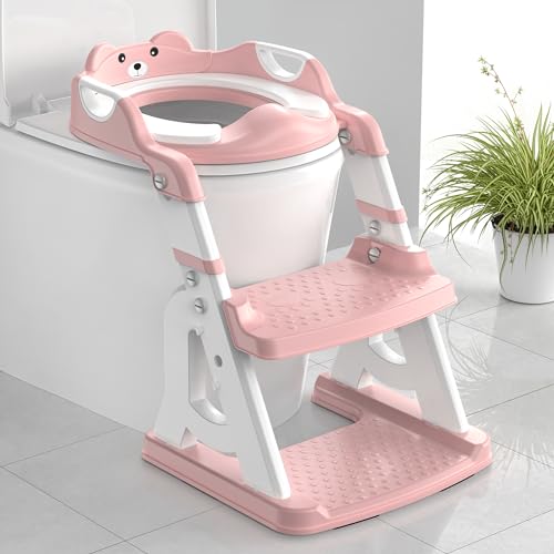 Meulife Potty Training Seat, Upgrade 2 in 1 Potty Training Toilet for Toddler, Toddler Toilet Seat for Boys Girls with Splash Guard, Anti-Slip Pad and Step Stool (Pink)